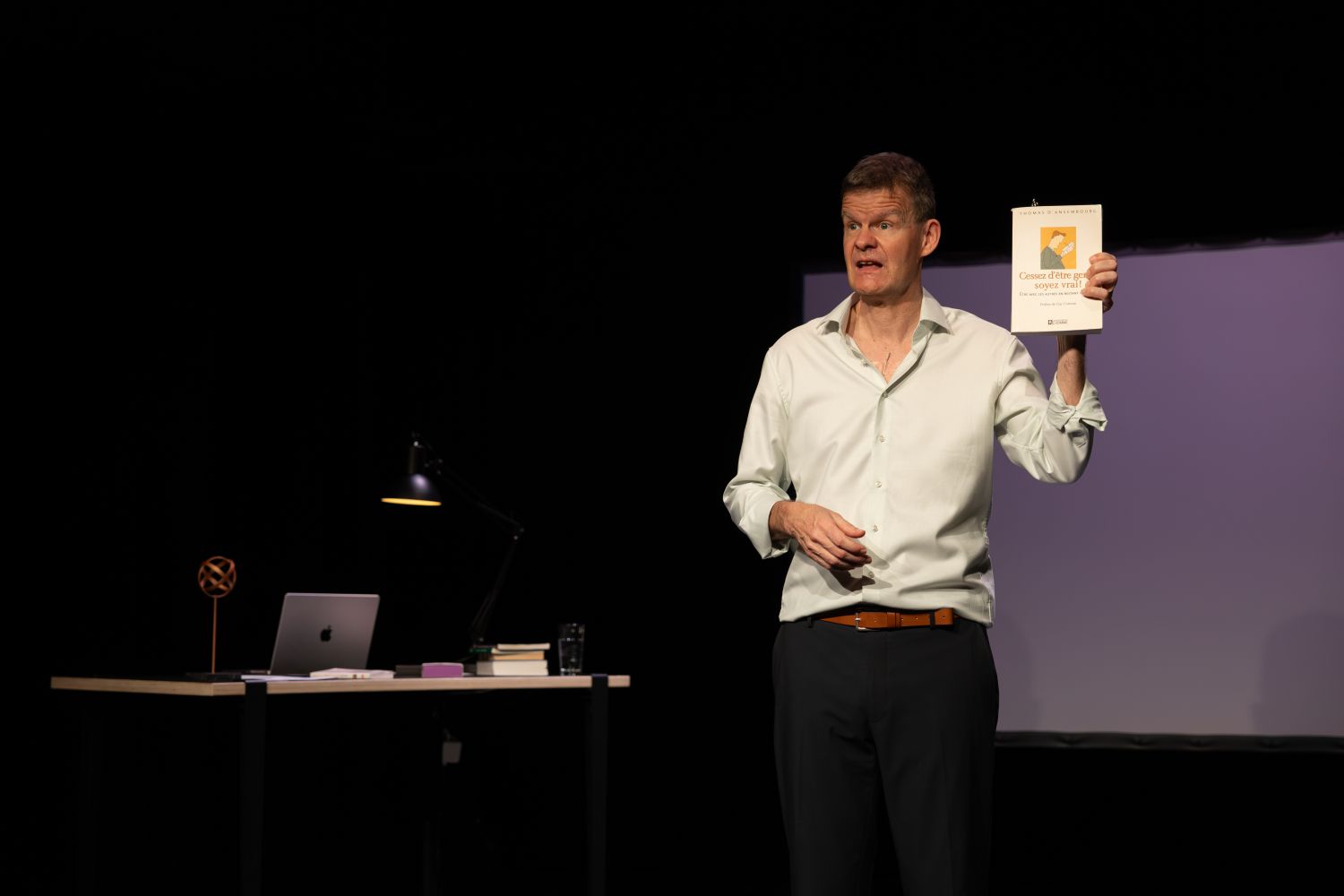 Douze ans après son dernier one-man-show où il nous « transmettait sa joie », Marc Donnet-Monay revient à ses premières amours. Entre folie et réflexions existentielles, mêlant comme nul autre tendresse, autodérision et sarcasmes, l’humoriste pince-sans-rire entend proposer un guide de survie (celui qu’au fond, il a toujours voulu proposer au public), où il sera question de science, de dualité, de féminisme et de quête d’identité, mais aussi de ronds-points et de tests ADN. Et quel bonheur de retrouver sa plume acérée, son ton mordant qui tranche avec une précision chirurgicale et cette rythmique unique qui fait danser les mots avec une élégance nonchalante ! Capable de colères drôlissimes et d’élans sentimentaux inattendus, le flegmatique dicodeur se posera sur la scène comme une petite alouette en équilibre instable, pour nous faire passer un moment hors du temps et empreint de sa malice inimitable.